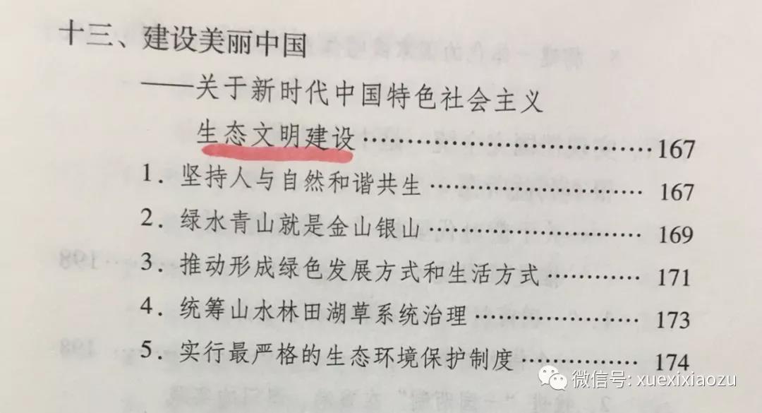 翻开《学习纲要》,共分为21章、99目、200条,近15万字,由绪论、主体部分、结语组成。我们从目录中可以看到纲要的篇章结构,小组认为,《学习纲要》通篇贯穿着什么是新时代中国特色社会主义、如何坚持和发展新时代中国特色社会主义这条主线。也在目录上做了标记,组员们可以一起先看一下。